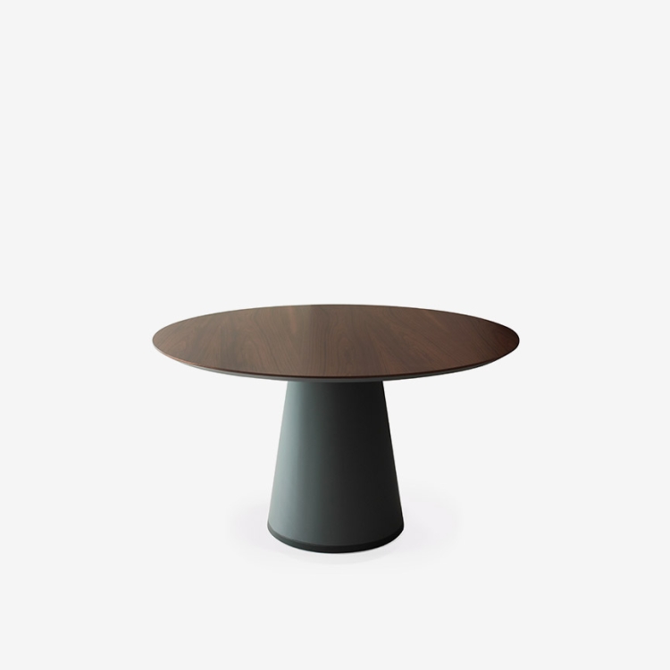 El juego de laca y textura en esta mesa de madera acentúa la elegancia de su mano de obra.