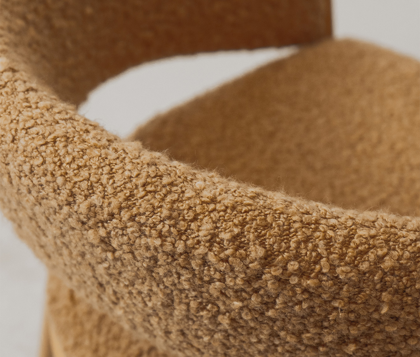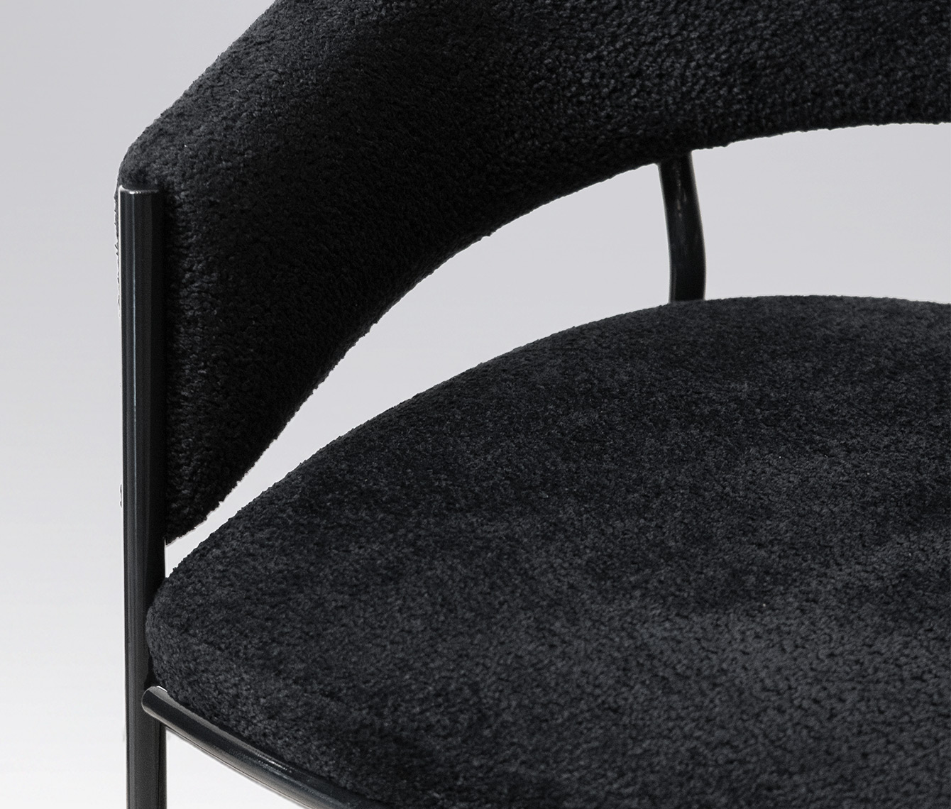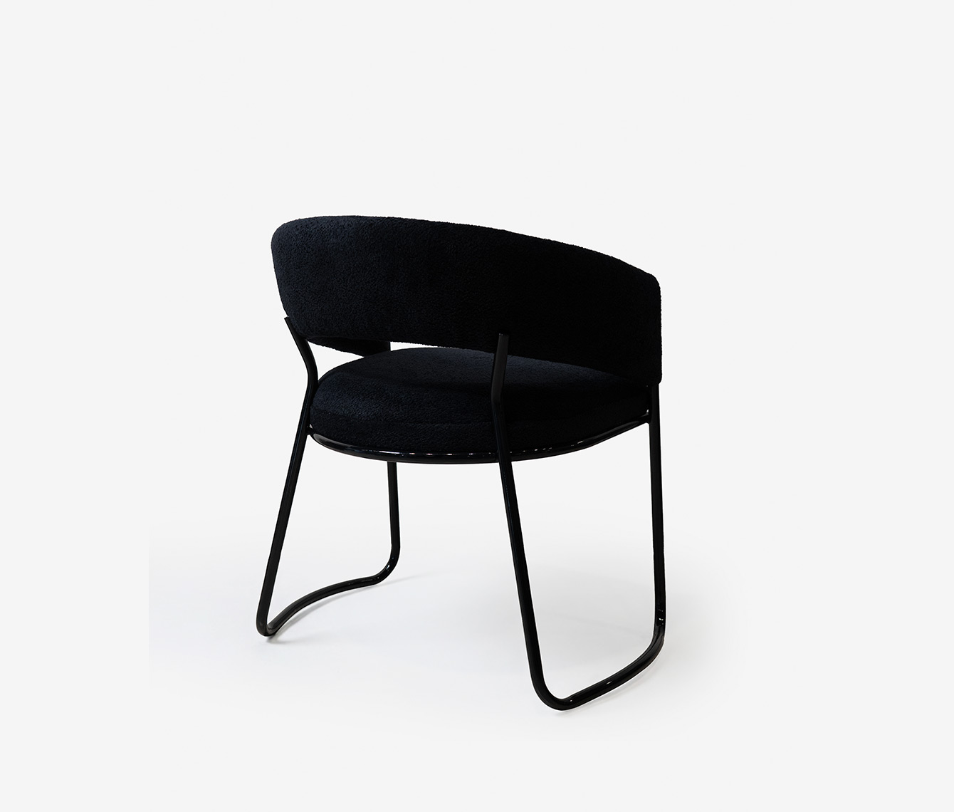 Caracterizada por una silueta liviana y envolvente, su estructura juega con un contraste poético: los elementos tapizados parecen flotar, suspendidos por un fino hilo metálico que los abraza y sostiene con una gracia casi invisible.
